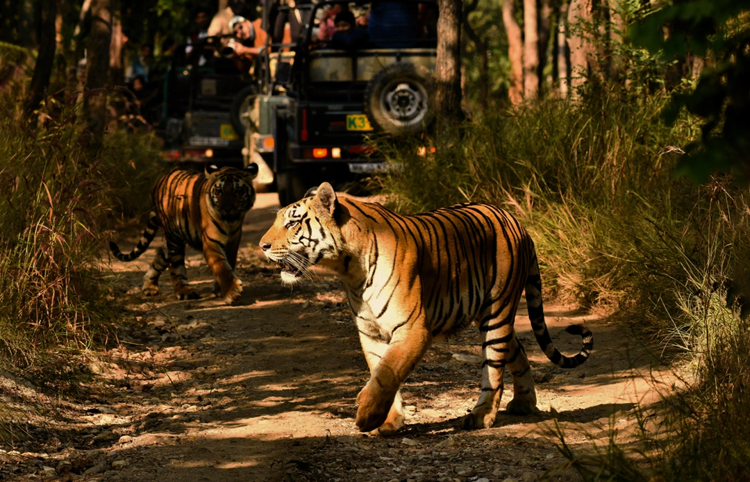 You may spot tigers, elephants, leopards, deer, birds, and many other wild animals during safaris.
