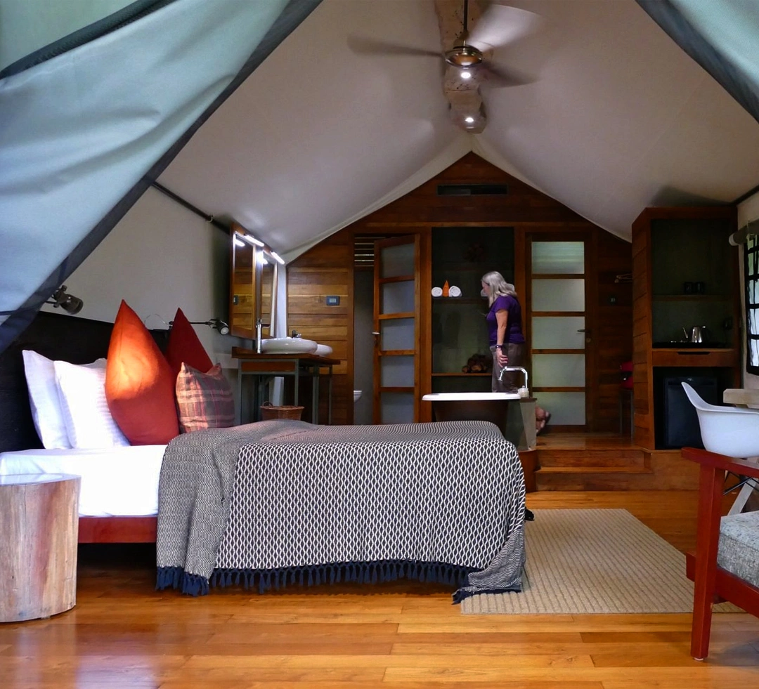 The Kaav Safari Lodge is located along the edge of the Nagarhole National Park and offers a good stay. The resort offers superior rooms, luxury tents, and luxury pool villas as accommodation options. All the staying options of this resort are well-maintained with modern comforts and amenities. The decor and vibes of this resort are perfect for a luxurious holiday experience near the park. This resort has a bright and cozy common living room where guests can interact with each other and have a good time. It also has a viewing deck from which you can enjoy birding with the help of binoculars. The resort features an Alfresco dining area where all meals are served during the stay. The dining area looks amazing, and you will have a luxurious dining experience here. After a thrilling safari, the guests can relax and rejuvenate at the in-house swimming pool of Kaav Safari Lodge. At night, a bonfire and barbecue can be arranged here on request at this property near Nagarahole National Park.